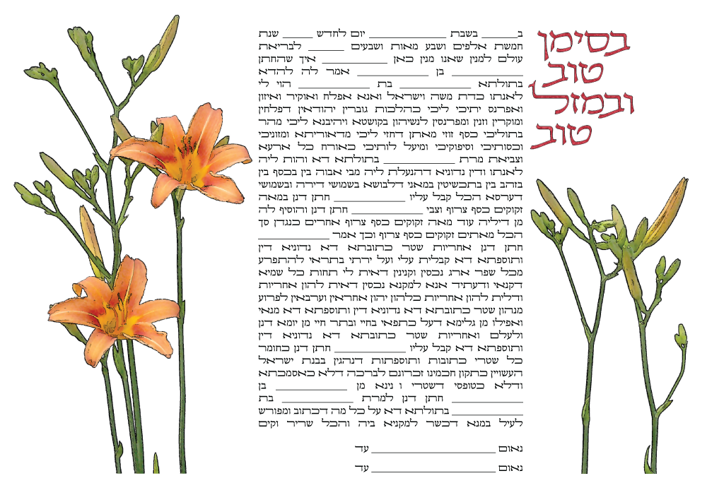 I put this k’suba together for the Kollel several years ago, and we’ve used it a few times. The daylilies were in Ellen Pollock’s garden; IIRC, I placed a sheet of white poster board behind the flowers so it would be easier to mask them out in Photoshop.